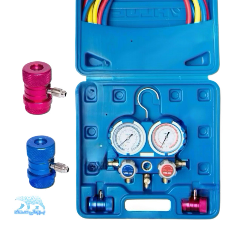 گیج منیفولد دوقلو ولوو مدل VMG-2- R134 A-B دارای کوپلینگ آبی و قرمز